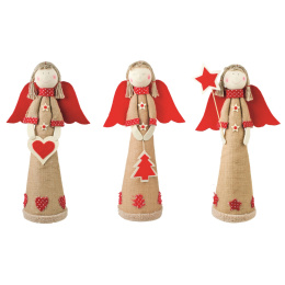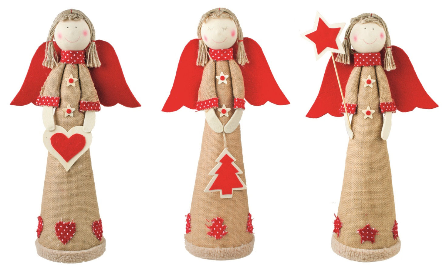 Anděl jutový s červenými křídly 47 cm 1 kus