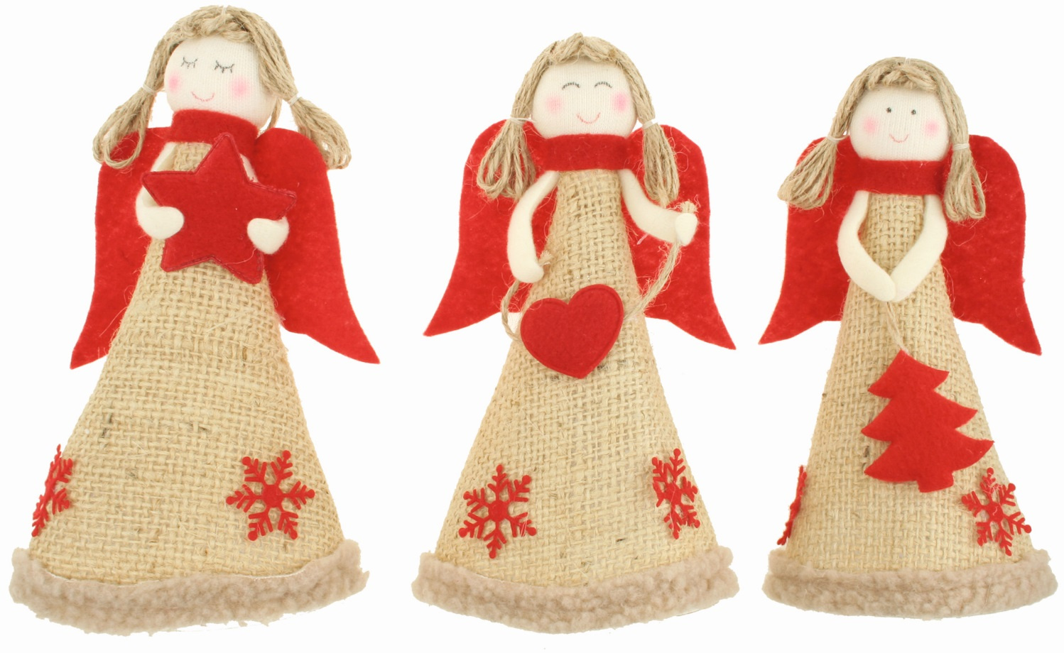 Anděl jutový s červenými křídly na postavení 19 cm 1 kus