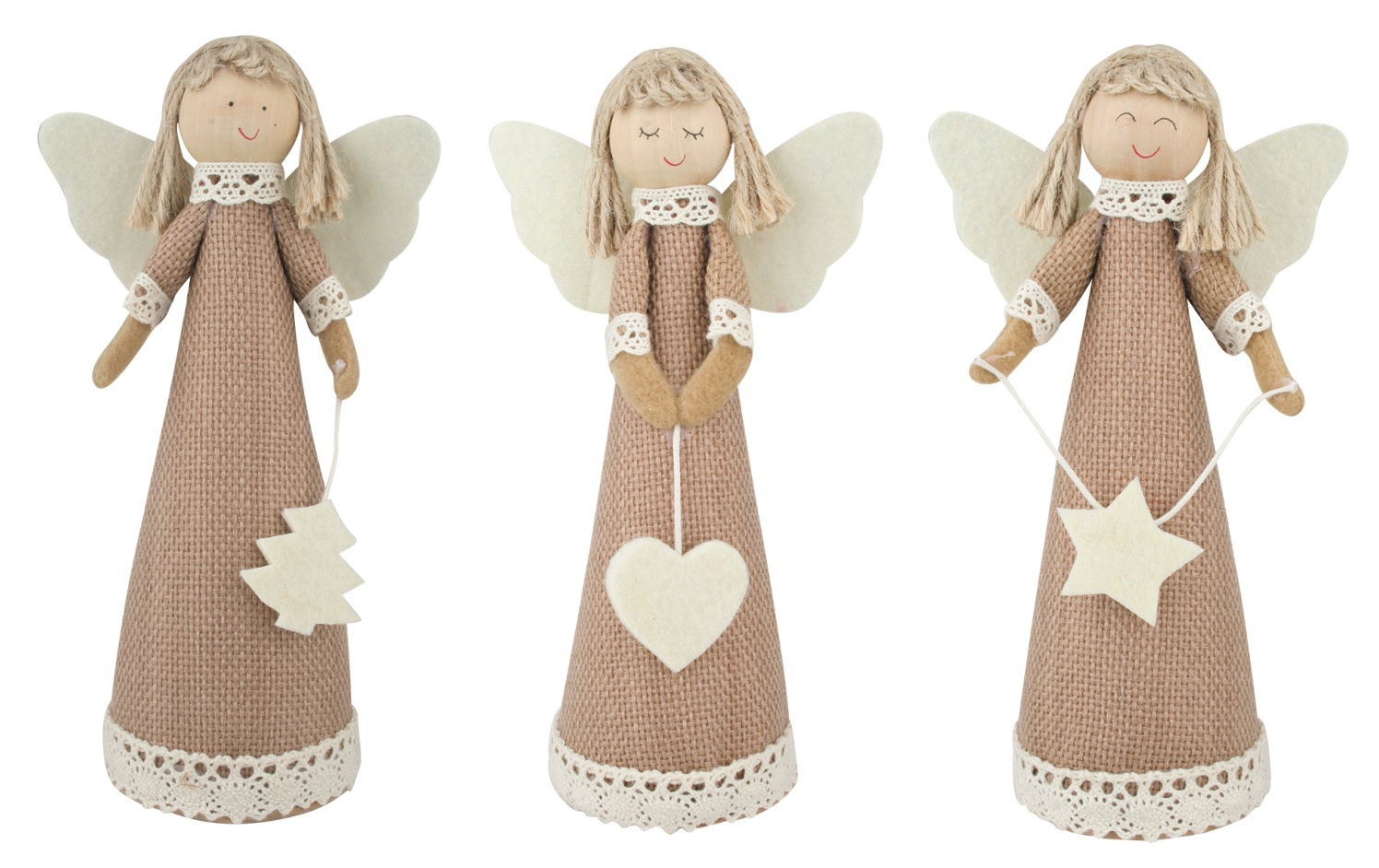 Anděl jutový s krajkou na postavení 18 cm 1 kus