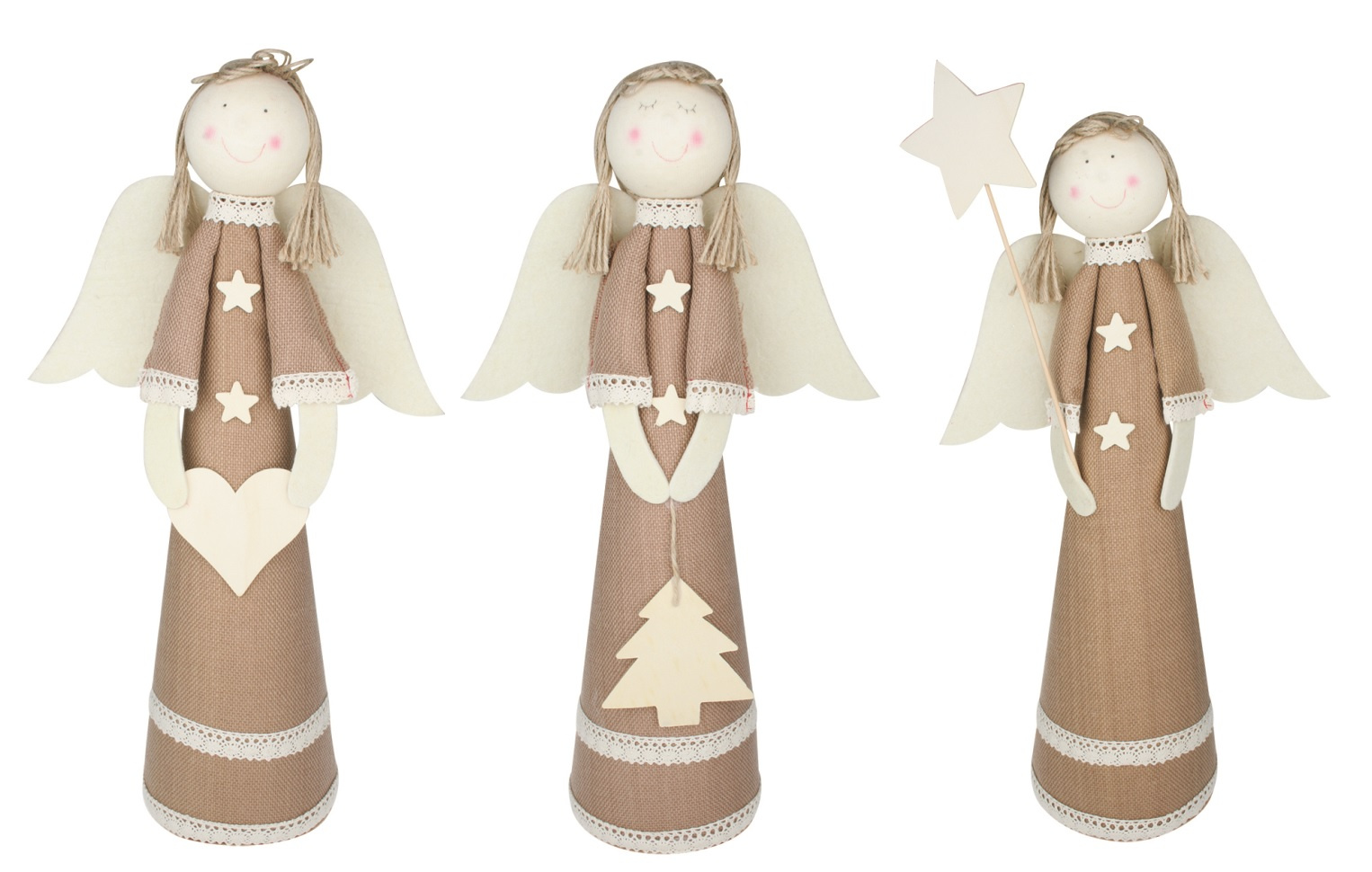 Anděl jutový s krajkou, na postavení 47 cm 1 kus