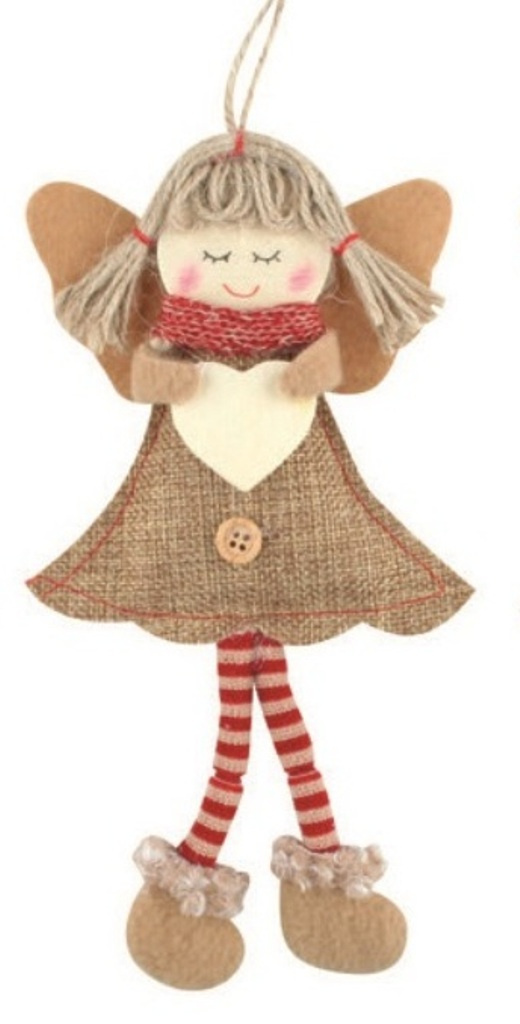 Anděl jutový s pruhovanými podkolenkami na zavěšení 19 cm č.2