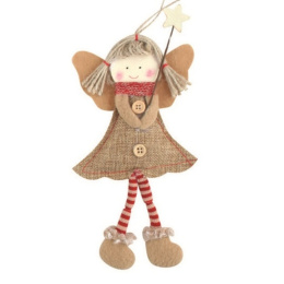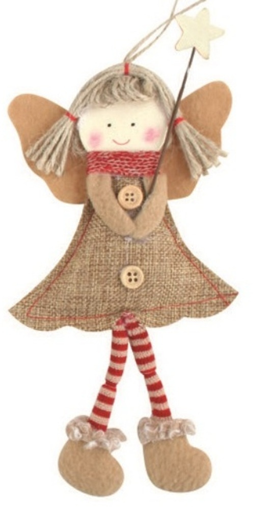 Anděl jutový s pruhovanými podkolenkami na zavěšení 19 cm č.3