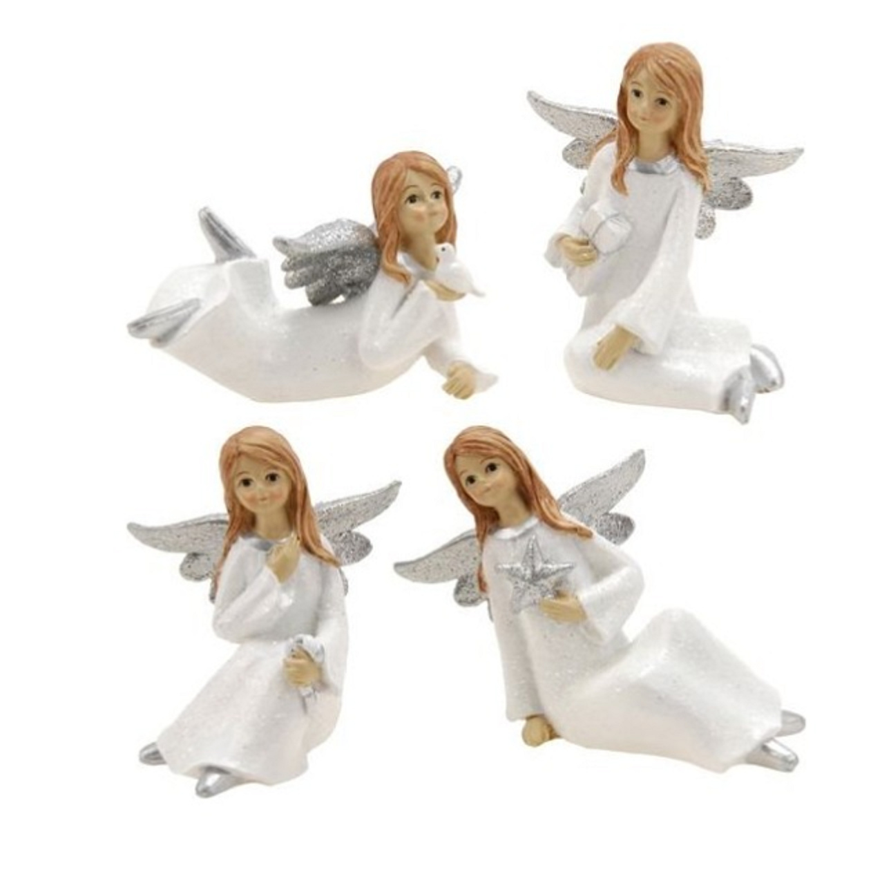 Anděl keramický sedící se stříbrnými křídly mix 80 mm 1 kus