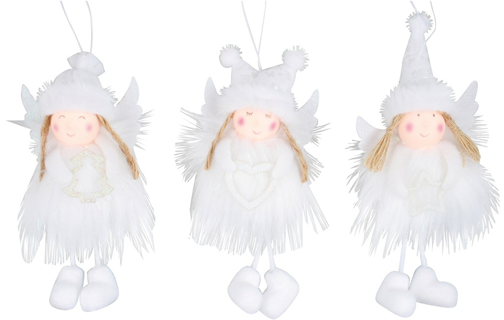 Anděl na zavěšení bílý se střapatou sukýnkou 12 cm 1 kus