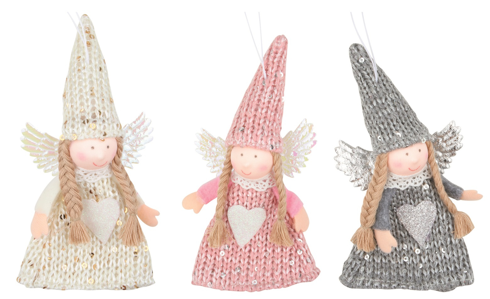 Anděl pletený s flitry 14 cm k zavěšení 1 kus