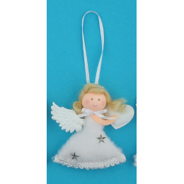 Anděl plyšový stříbrný srdce na zavěšení 10 cm