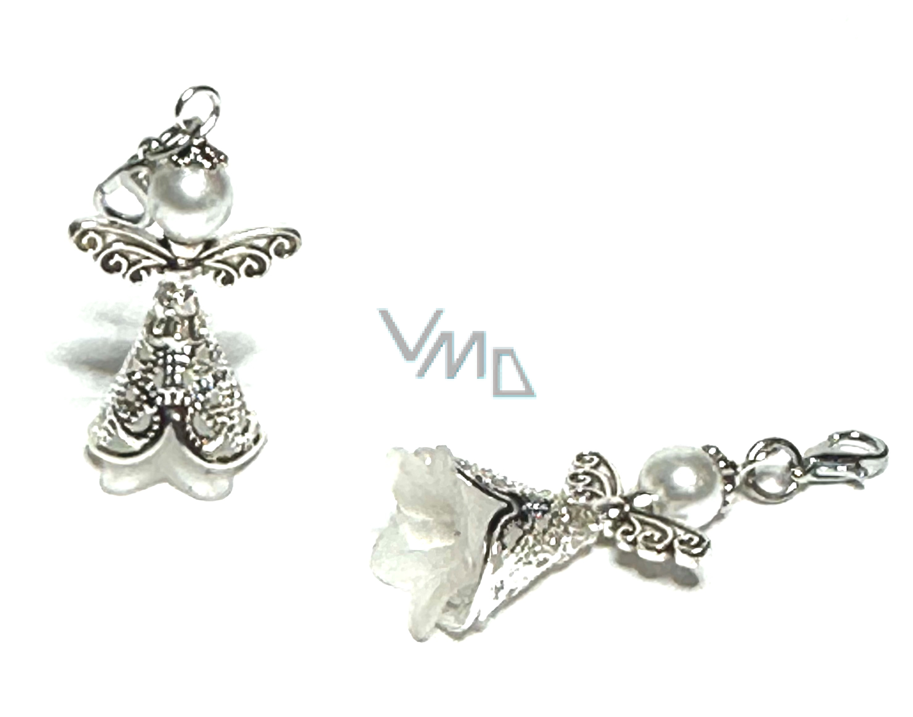 Anděl přívěsek s křídly bílá sukně s postříbřenými andělskými křídly 22 x 37 mm 1 kus
