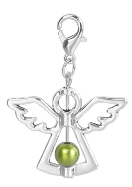 Anděl strážný přívěsek se zelenou perličkou 29 x 37 mm