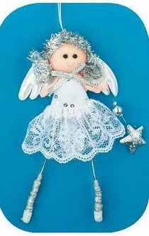 Anděl s bílou krajkovou sukýnkou na zavěšení 15 cm