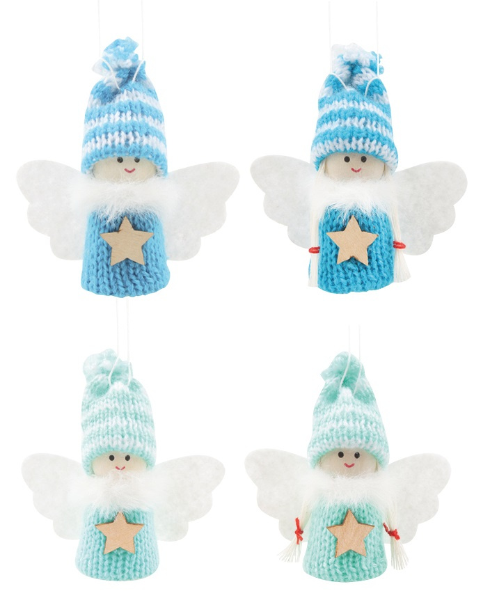 Anděl s dřevěnou hvězdičkou na zavěšení 7,5 cm mix motivů