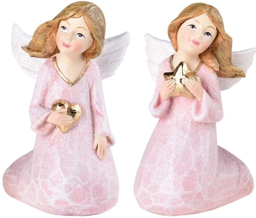 Anděl sedící starorůžový polystone mix 56 x 90 mm