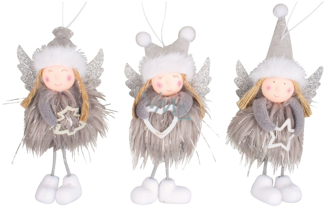 Anděl šedý se střapatou sukýnkou na zavěšení 12 cm 1 kus různé druhy