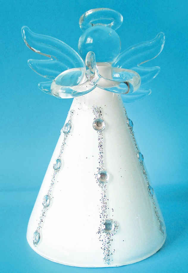 Anděl skleněný bílý na postavení 8 cm