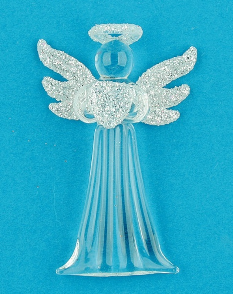 Anděl skleněný na zavěšení úzký 7,5 cm