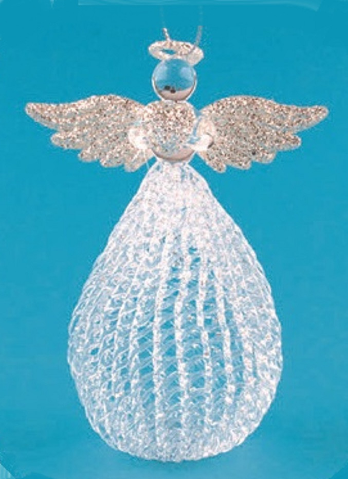 Anděl skleněný s baňatou sukní na postavení 10 cm