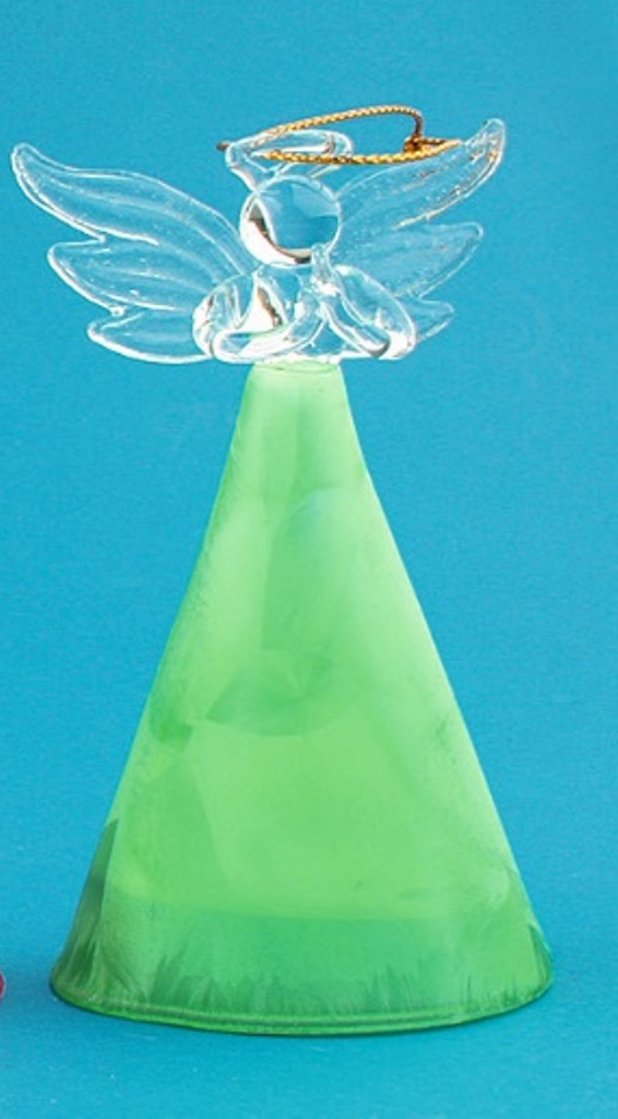 Anděl skleněný s barevnou sukní zelená 10 cm