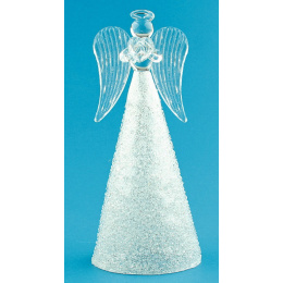 Anděl skleněný s třpytivou sukní na postavení 14 cm