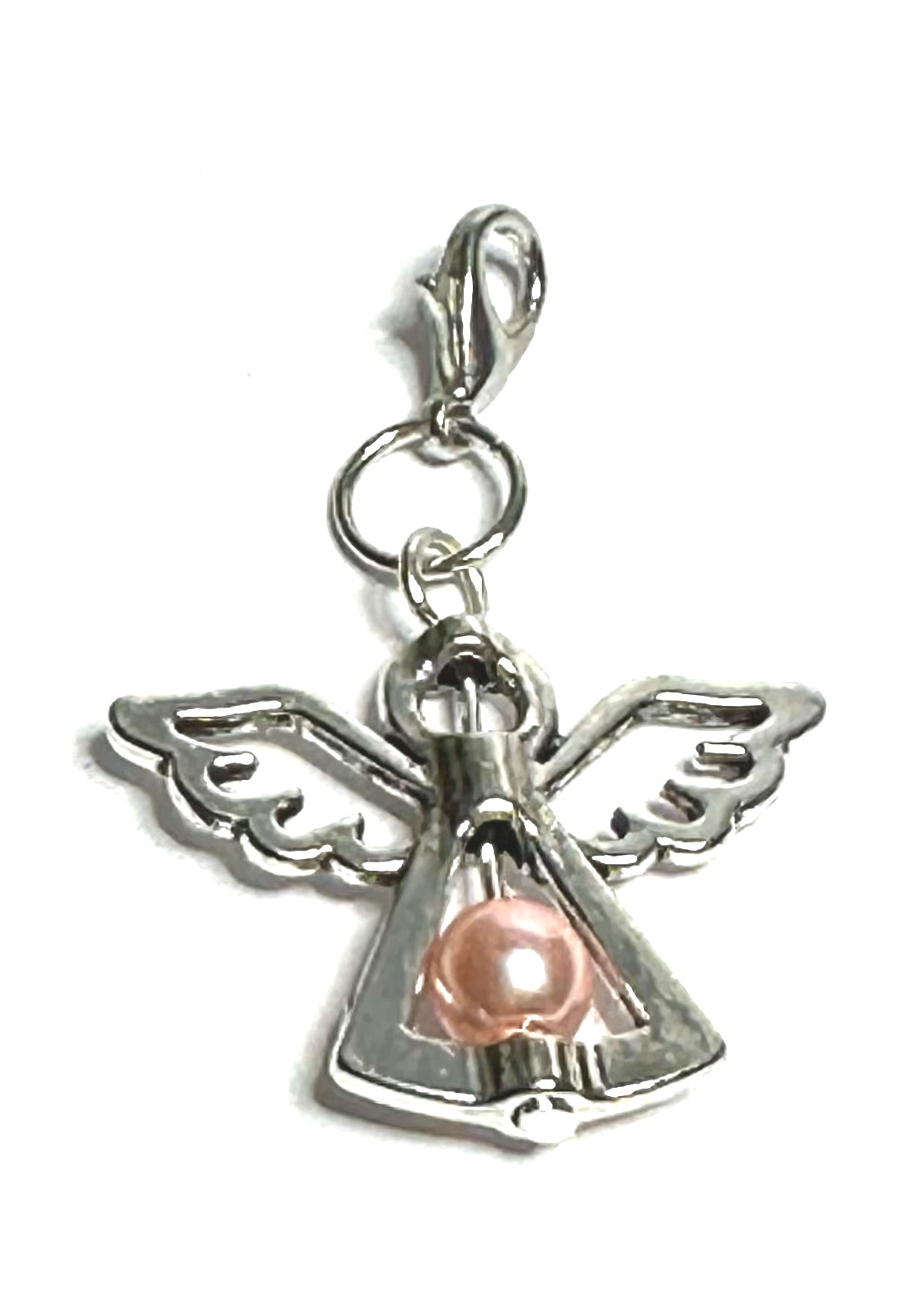 Anděl strážný přívěsek s růžovou perličkou 29 x 37 mm 1 kus
