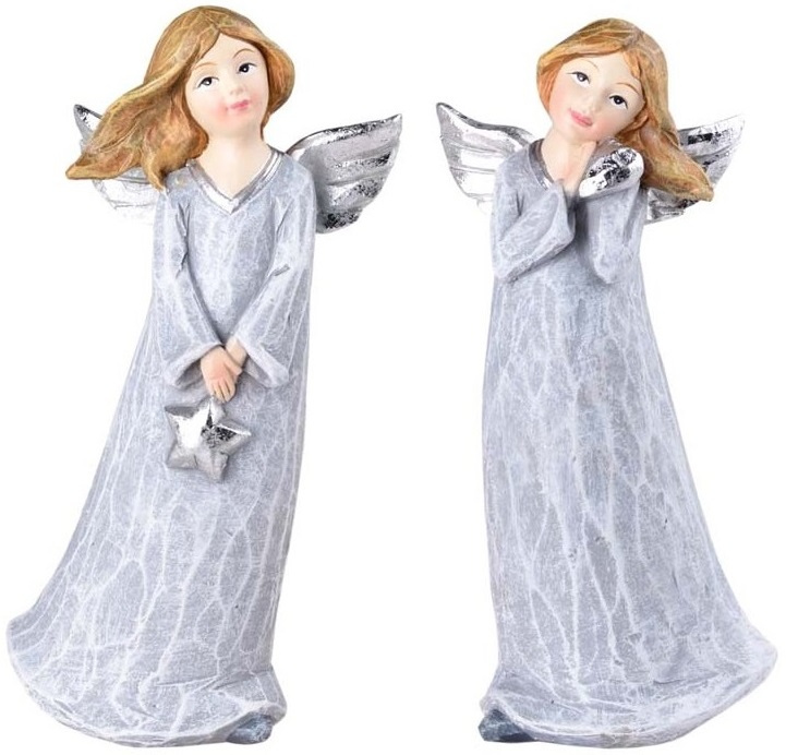 Anděl stříbrný polystone mix na postavení 74 x 130 mm