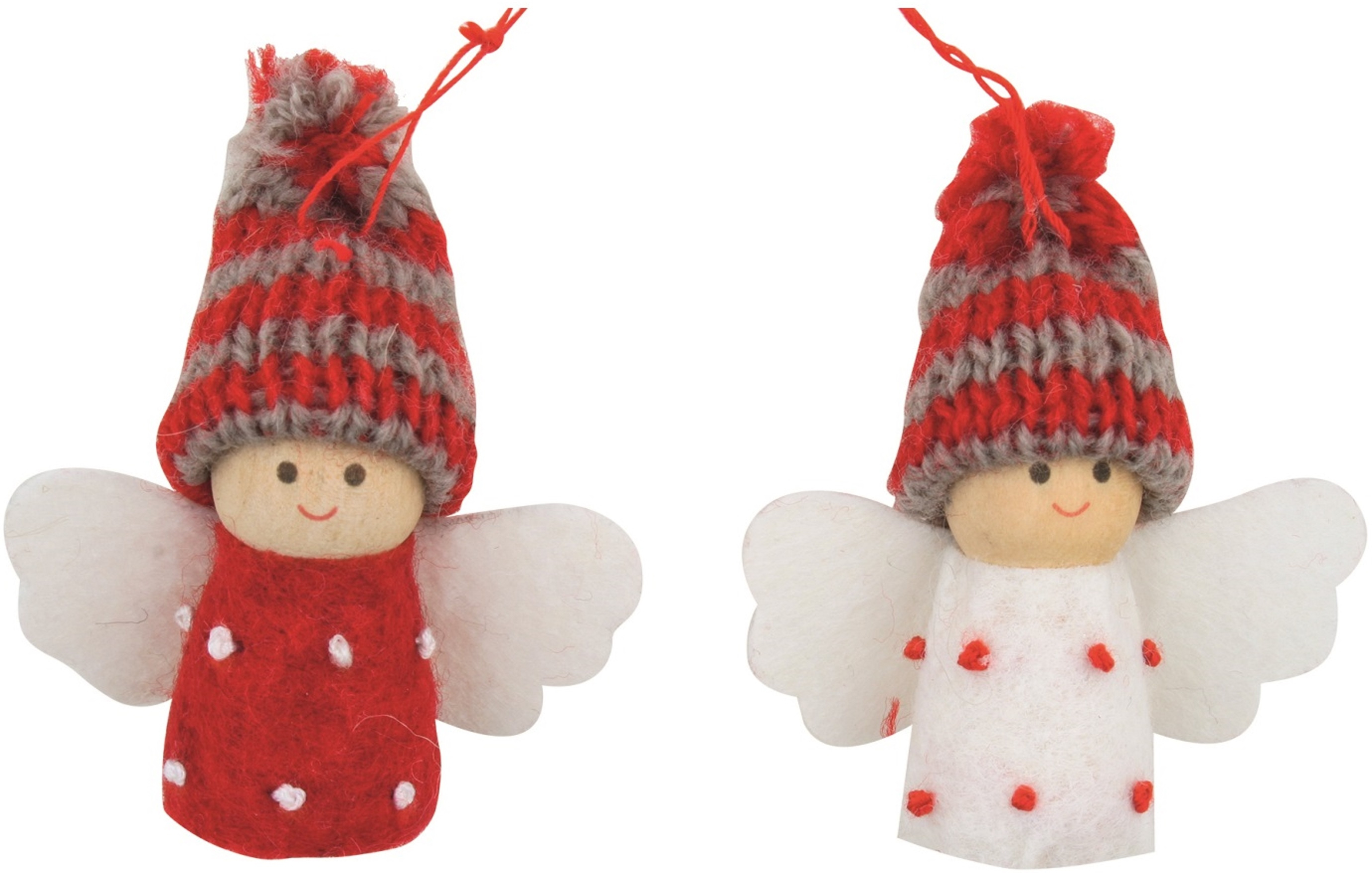 Andílka s pletenou čepičkou z filcu a dřevěnou hlavičkou využijete ke zdobení věnců, vazeb, dárků nebo ho můžete jednoduše zavěsit třeba na vánoční stromeček.