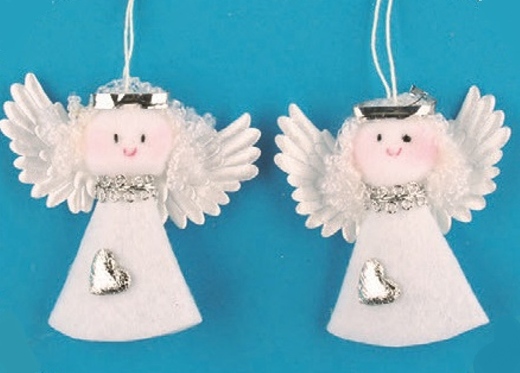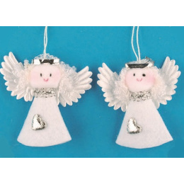 Anděl z filcu bílý na zavěšení 7 cm, 2 kusy v sáčku