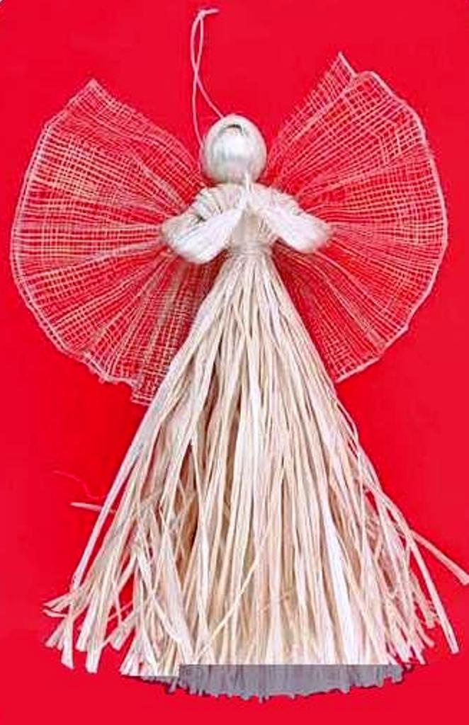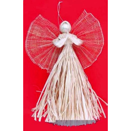 Anděl z palmového šustí a křídla se zlatými vlákny 33 cm