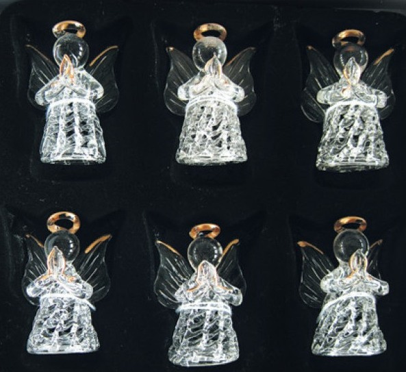 andělé ze skla sada andělů s kudrnatou sukní 6 ks, 5 cm