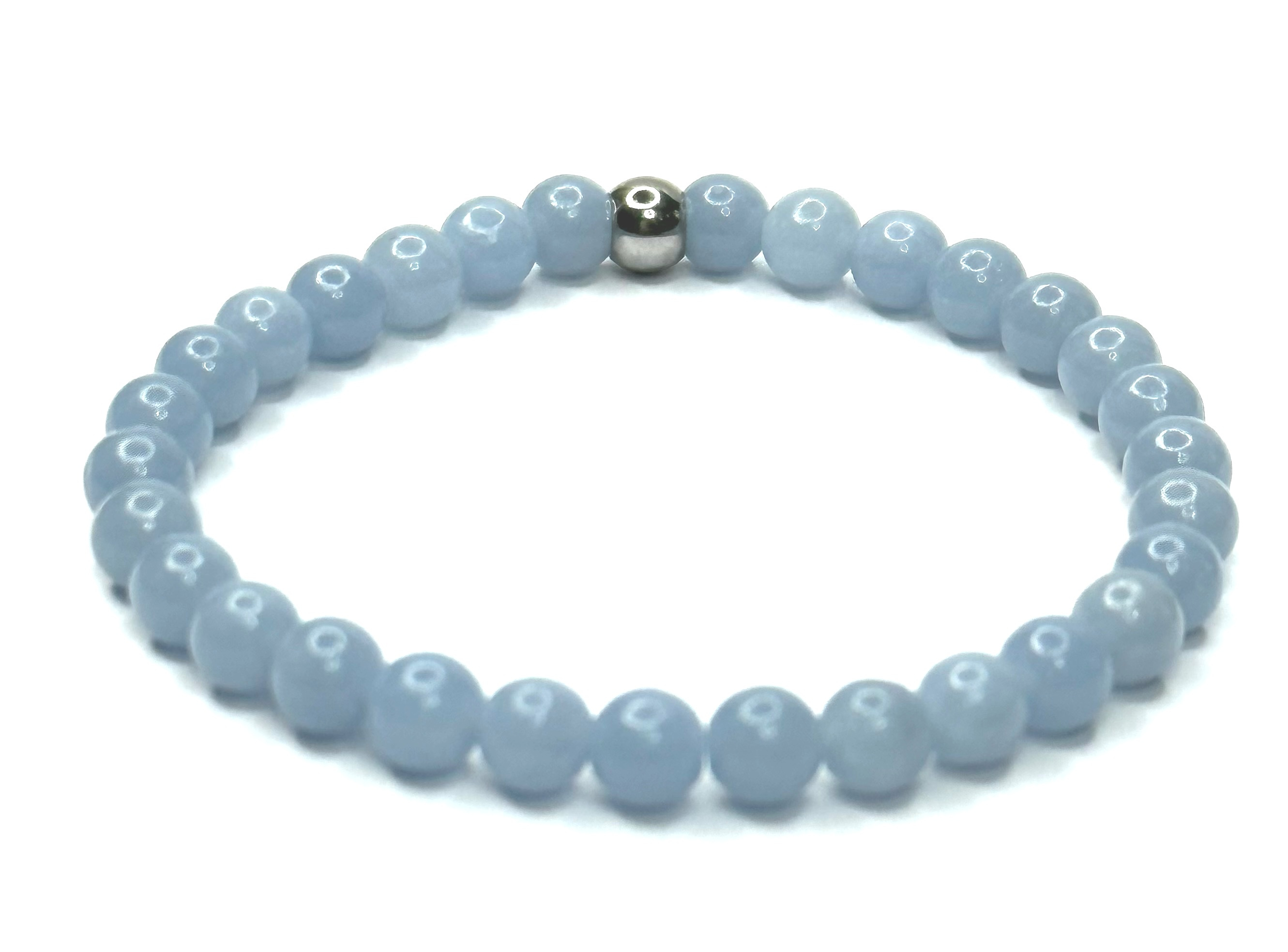 Angelit modrý náramek elastický přírodní kámen, kulička 6 mm / 16 - 17 cm, kámen klidu, míru
