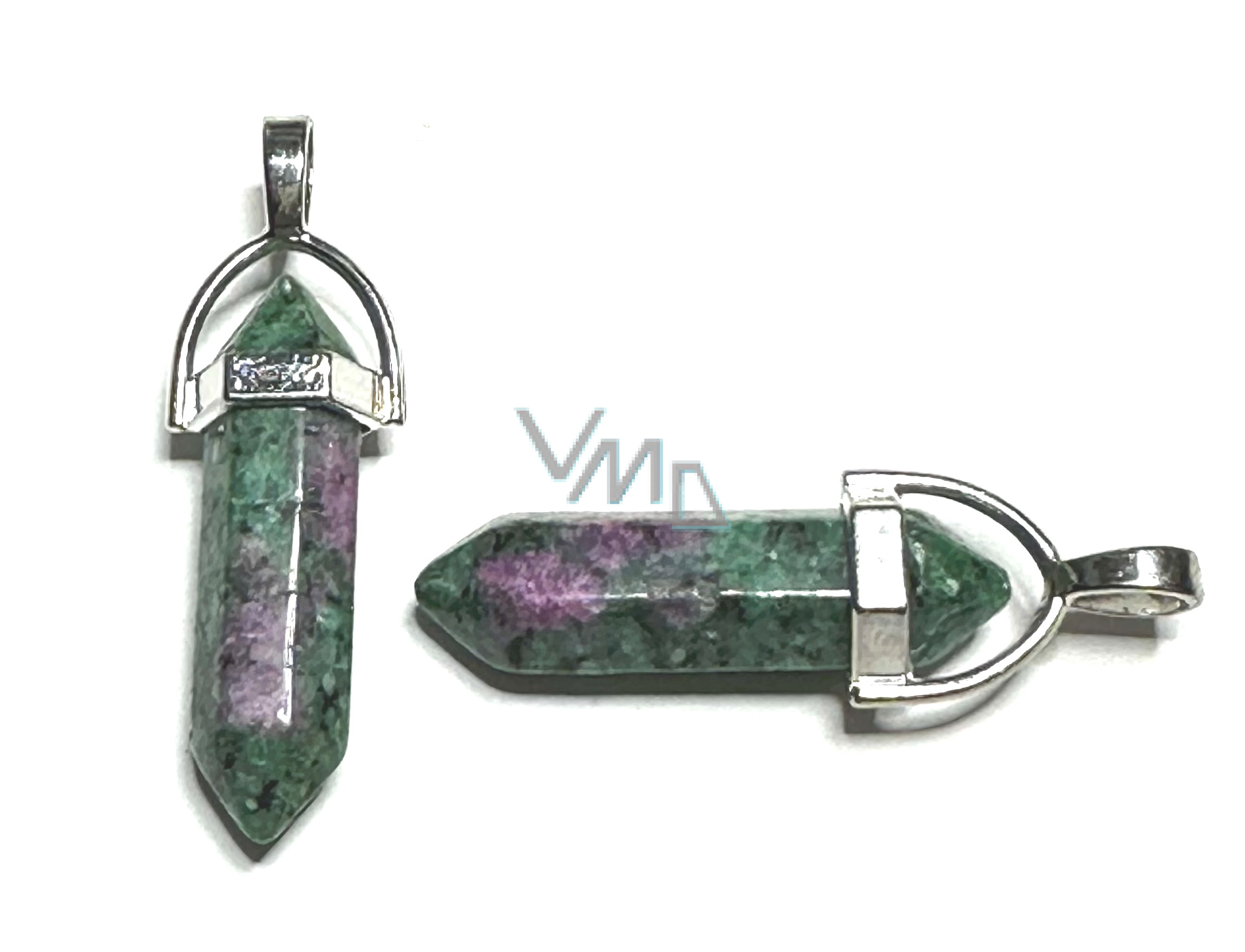 Anyolit / Rubín v Zoisitu kyvadlo šestihran přívěsek přírodní kámen 41 x 13 mm, ulevuje v období smutku