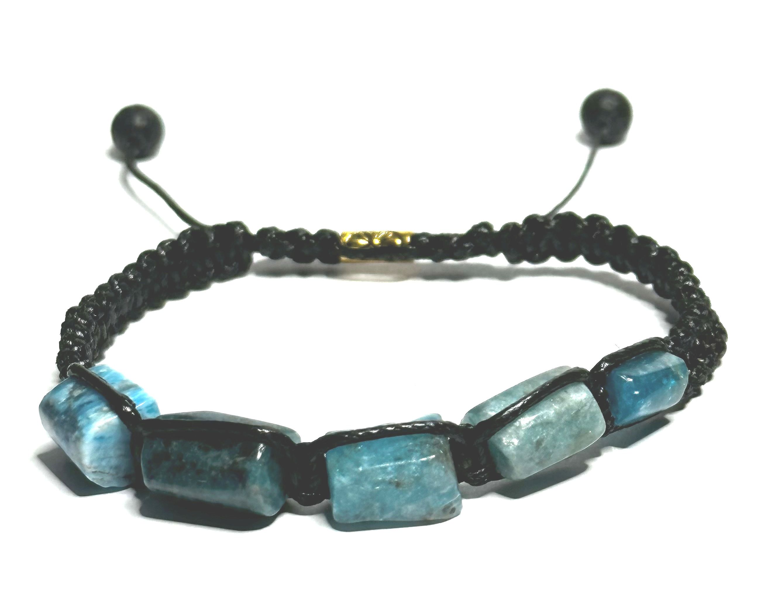 Apatit modrý náramek vyrobený ze zaoblených přírodních kamenů, ručně pletený, nastavitelná velikost, kámen realizace