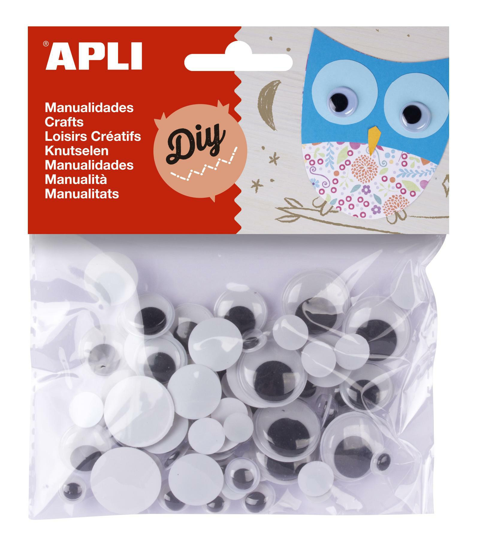 Apli Pohyblivé oči nelepící černé kulaté mix velikostí 75 kusů, 13058