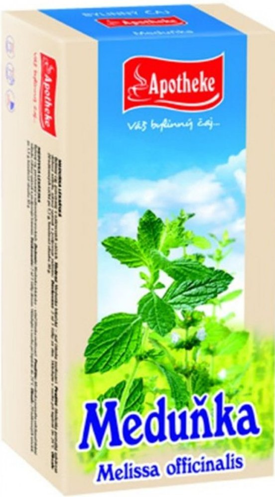 Přípravek Apotheke Meduňka lékařská čaj 20x1,5g je registrovaný jako doplněk stravy. Nemá schválené léčivé účinky a nejedná se o lék. Doplňky stravy nejsou určeny jako náhrada pestré stravy. Nepřekračujte doporučené dávkování.