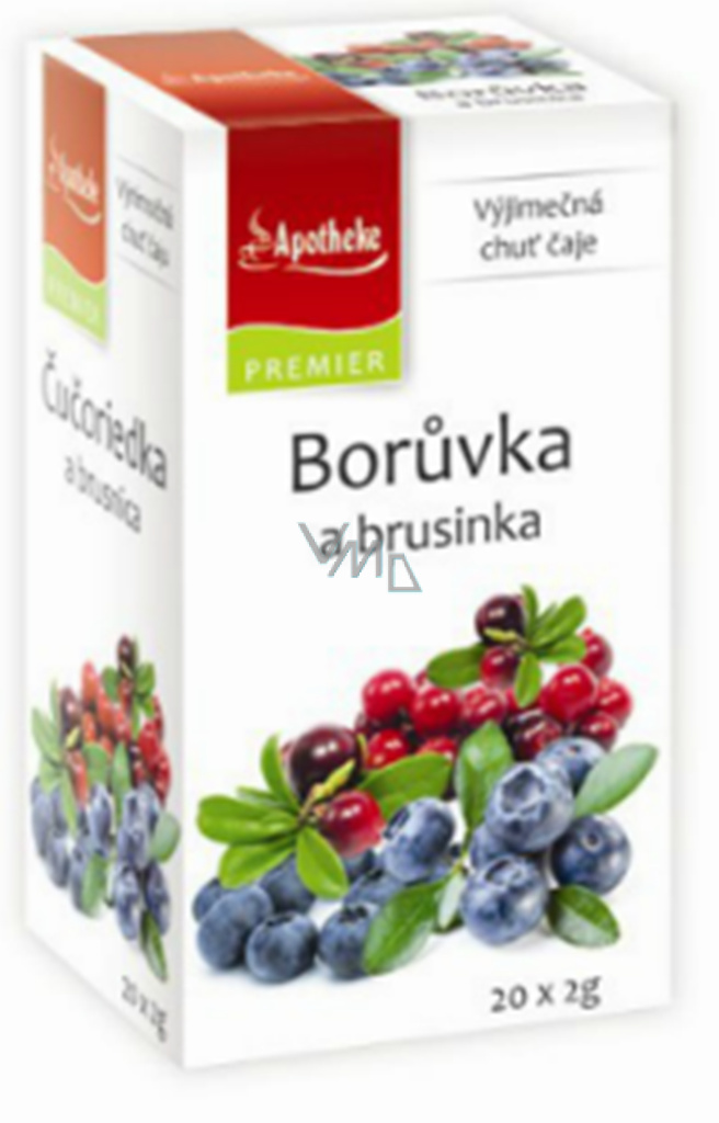 Přípravek Apotheke Borůvka a Brusinka čaj 20x2g je registrovaný jako doplněk stravy. Nemá schválené léčivé účinky a nejedná se o lék. Doplňky stravy nejsou určeny jako náhrada pestré stravy. Nepřekračujte doporučené dávkování.