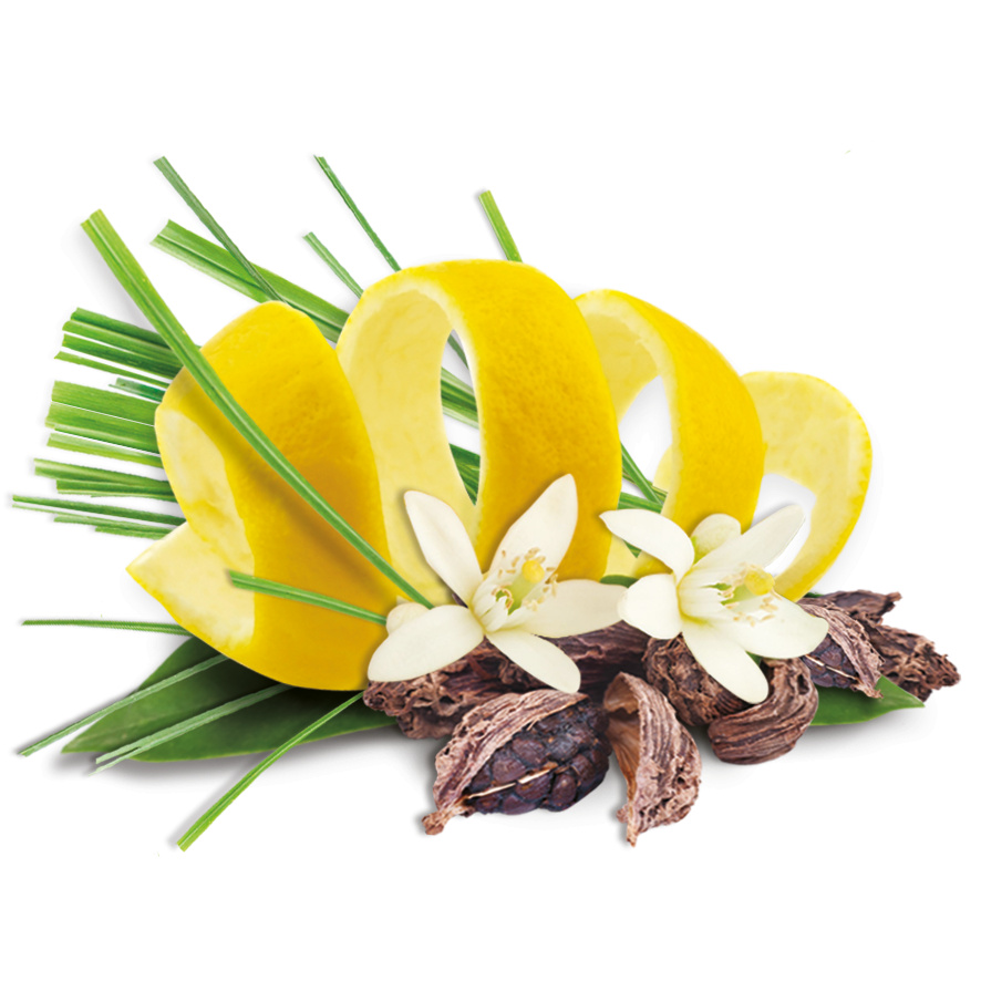 Citronová tráva nať (18 %), rakytník plod, Máta nať, Meduňka nať, zázvor kořen, Lékořice kořen (10%), anýz plod, Čekanka kořen, přírodní aroma, kardamom (3 %), koriandr plod, Kyselina Citronová, Citronová kůra (2 %)