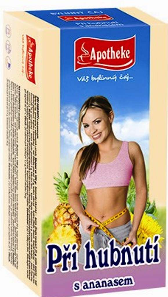 Přípravek Apotheke Čaj při hubnutí s ananasem 20x1,5g je registrovaný jako doplněk stravy. Nemá schválené léčivé účinky a nejedná se o lék. Doplňky stravy nejsou určeny jako náhrada pestré stravy. Nepřekračujte doporučené dávkování.