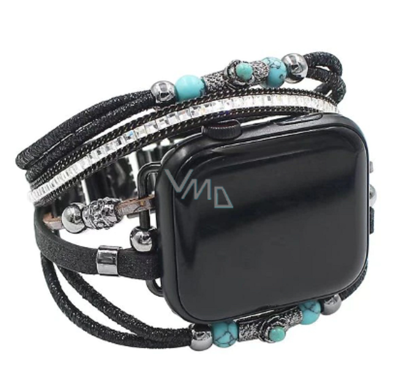 Apple Watch řemínek na hodinky ručně vyráběný Černý + korálky, velikost 38/40/41 mm