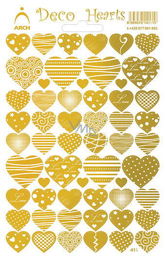 Arch Holografické dekorační samolepky srdíčka zlatá 18 x 12 cm 412