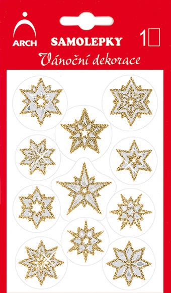 Arch Holografické dekorační samolepky vánoční s glitry 707-GG stříbrno-zlaté 8,5 x 12,5 cm