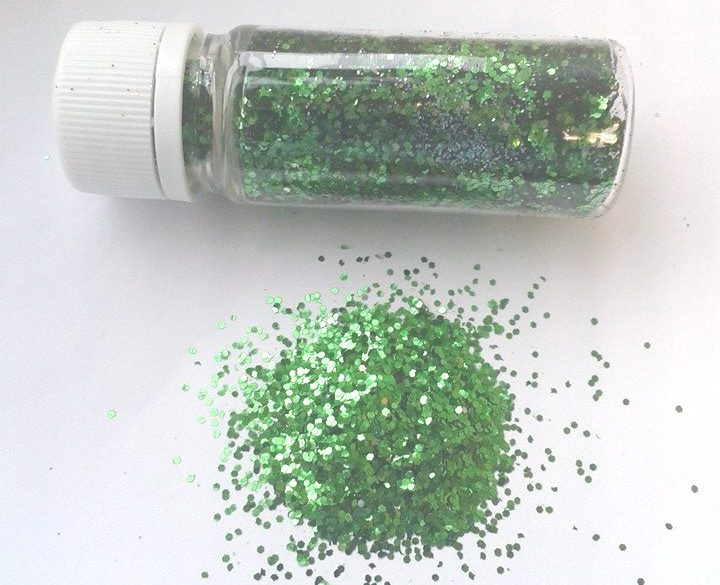 - Glitr nasypeme na lepidlo nebo barvu a necháme zaschnout.