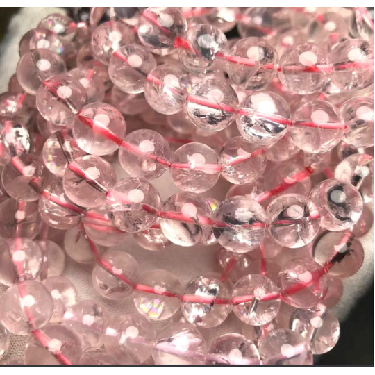 Azeztulit růžový náramek elastický přírodní kámen 9 mm / 16 - 17 cm vysokofrekvenční energie, kámen světla a jasnosti