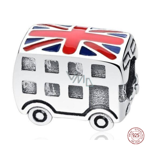 Charm Sterlingové stříbro 925 Anglie vlajka Londýn - Doubledecker autobus, korálek na náramek cestování