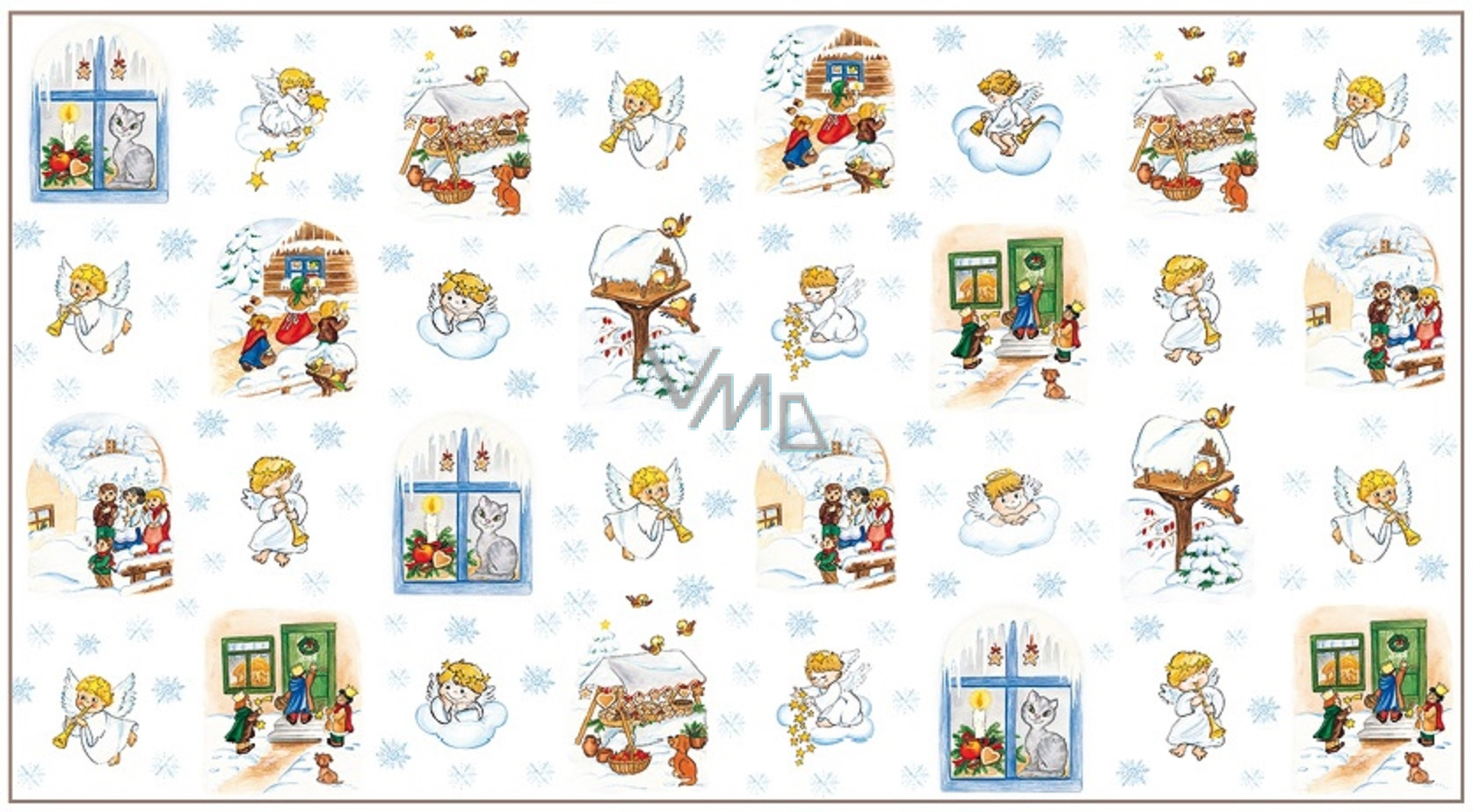 Balicí vánoční papír České Vánoce 70 x 200 cm Bílý andílci, koledníci