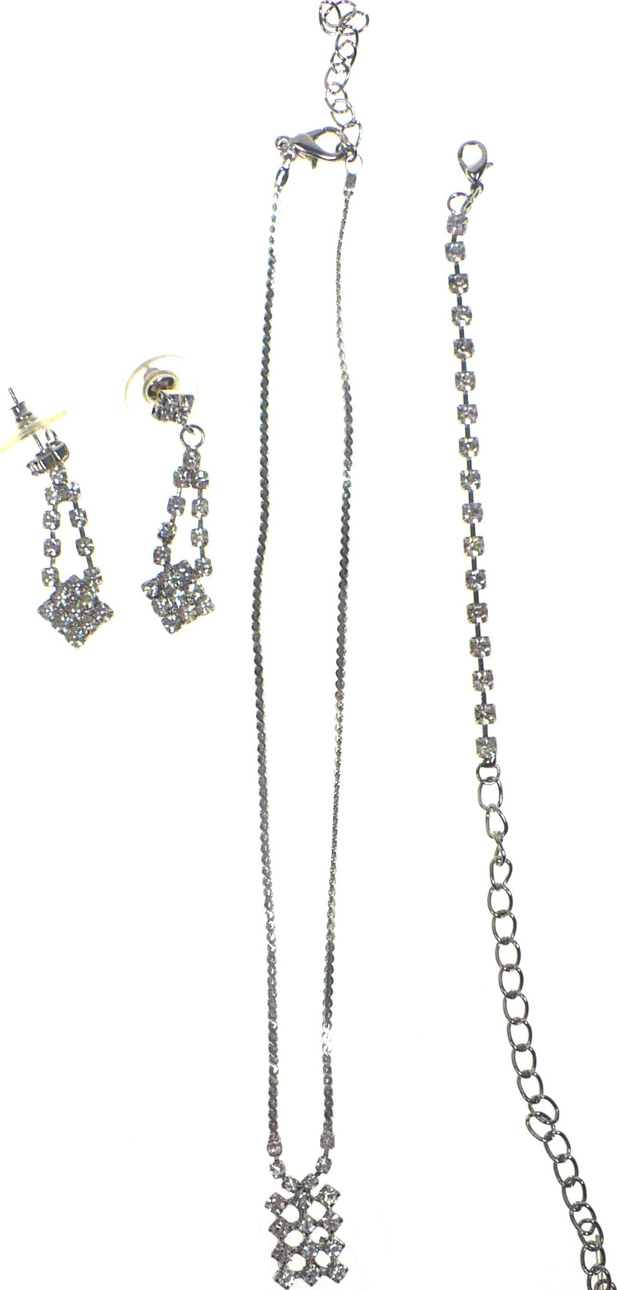 Bižuterie Náhrdelník stříbrný s kamínky 35 cm + náramek 11 cm + náušnice 1 pár