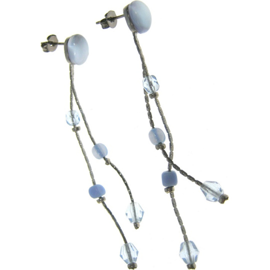 Náhrdelník stříbrný s modrými kamínky 38 cm + náušnice 1 pár