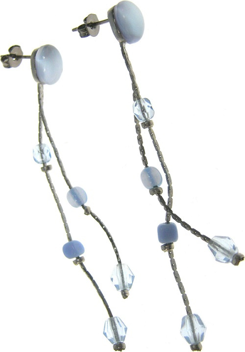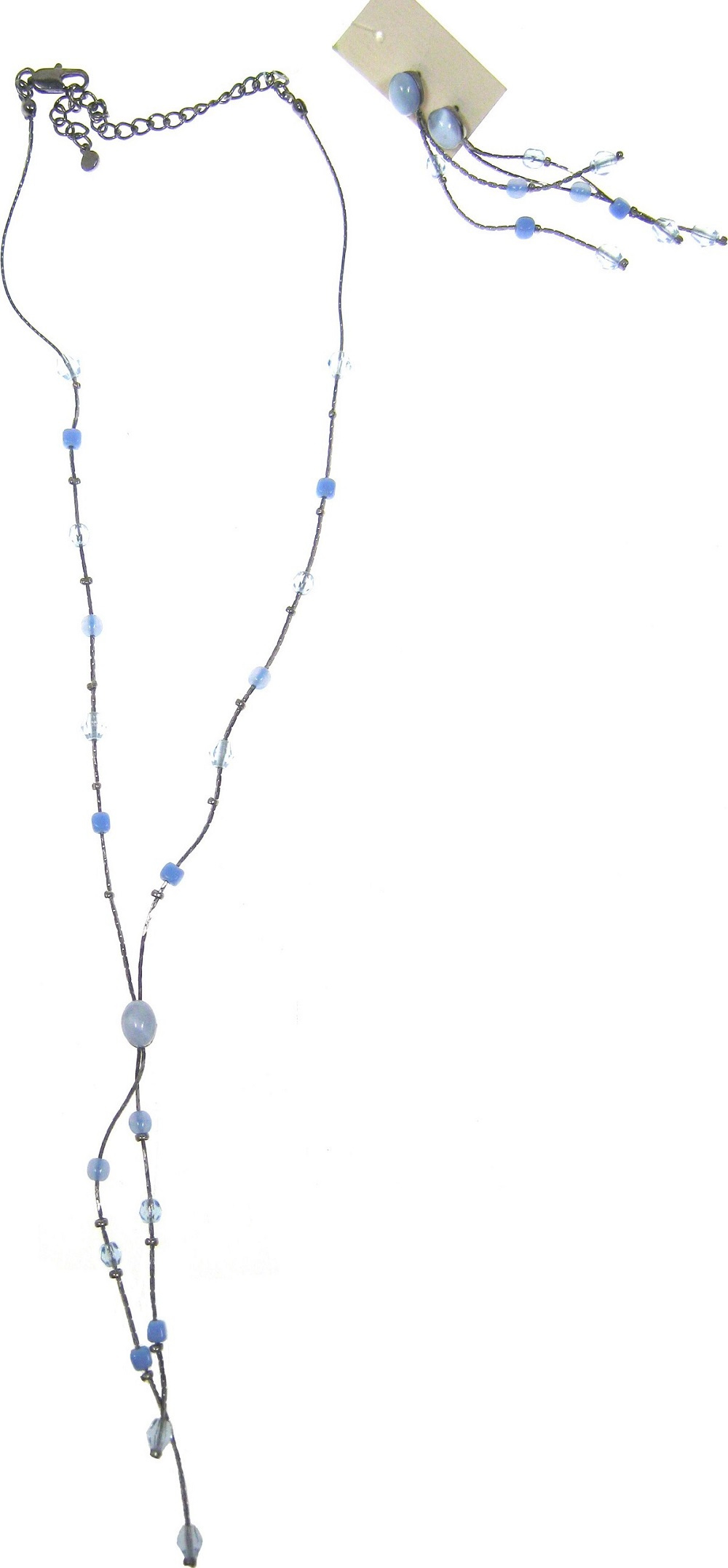 Náhrdelník stříbrný s modrými kamínky 38 cm + náušnice 1 pár