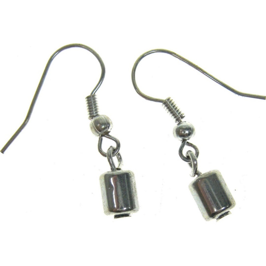 Náhrdelník se stříbrnými přívěšky ve tvaru válce. Bižuterní kov má stříbrnou barvu. Zapínání na klasickou karabinku. Součástí náhrdelníku jsou i visací náušnice ve tváru válce bez zapínání.