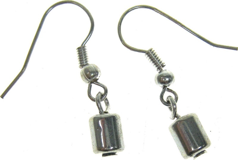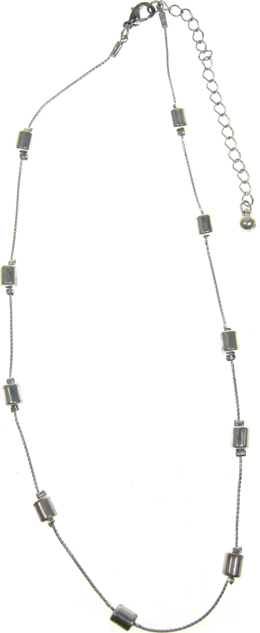 Náhrdelník se stříbrnými přívěšky ve tvaru válce. Bižuterní kov má stříbrnou barvu. Zapínání na klasickou karabinku. Součástí náhrdelníku jsou i visací náušnice ve tváru válce bez zapínání.
