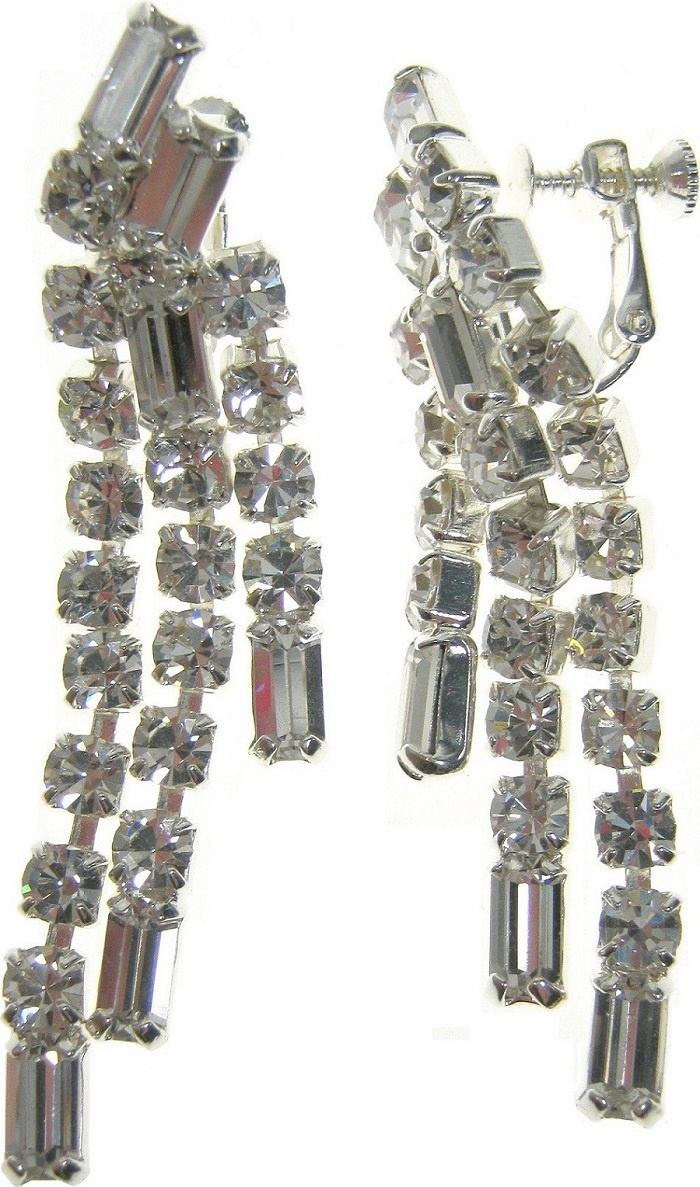Náušnice štrasové stříbrné 7 x 1,5 cm 1 pár
