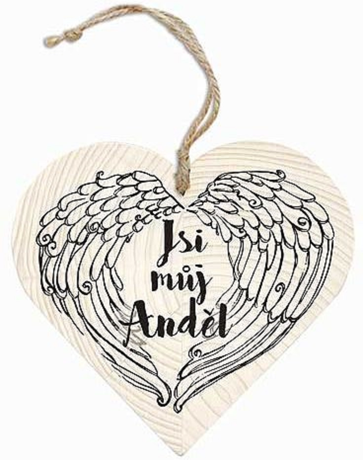 Bohemia Gifts Dřevěné dekorační srdce s potiskem Jsi můj anděl 12 cm