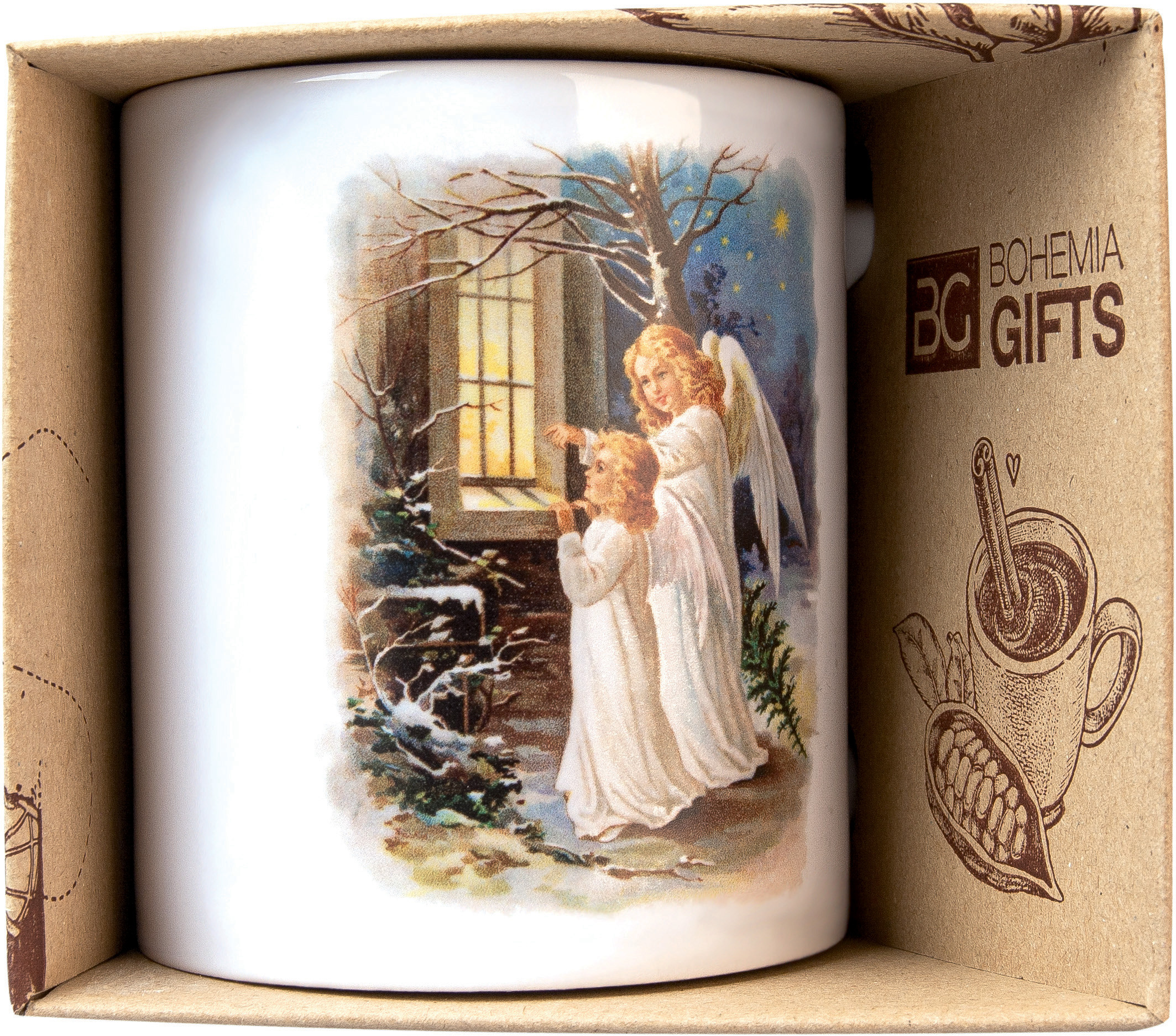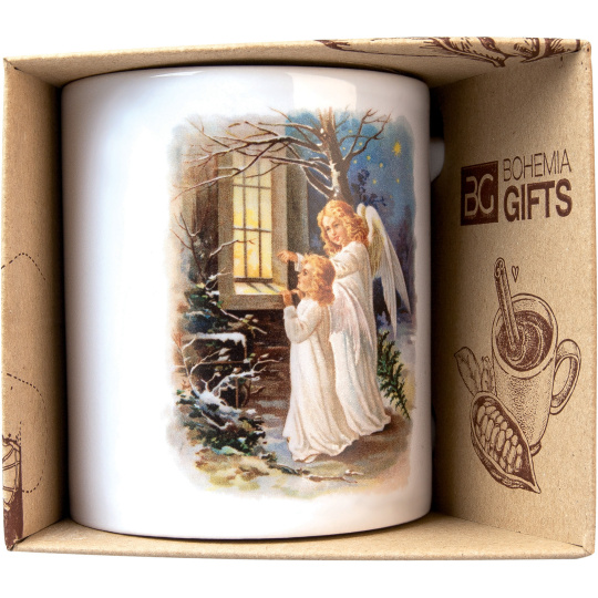 Keramický hrnek s potiskem - andělé. Baleno v dárkové krabičce.